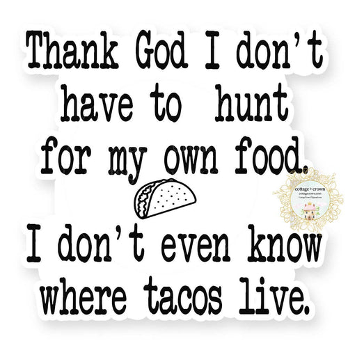 Taco Sticker Thank God I Don't Have To Hunt For My Own Food
